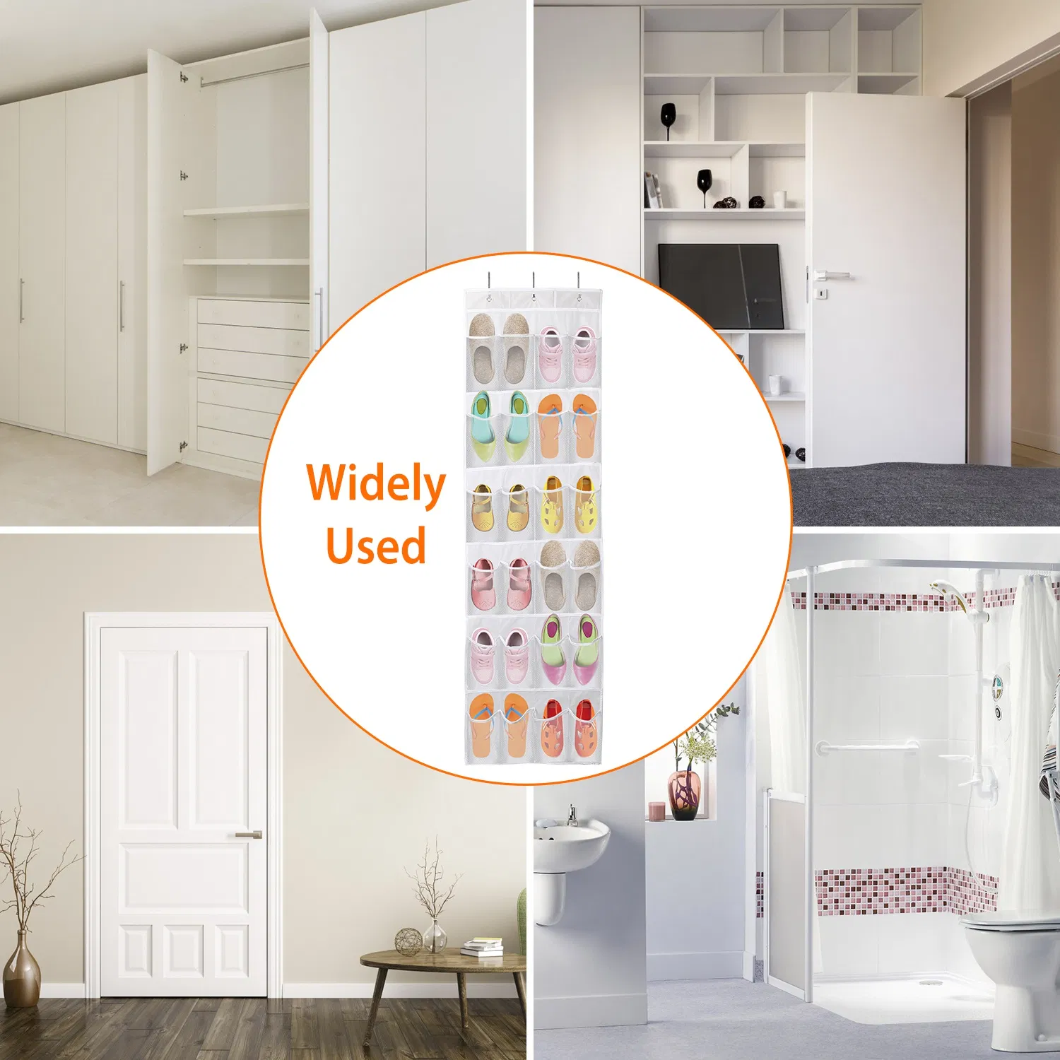 1Pc Over The Door Shoes Rack 24-Pocket Crystal Clear Organizer 6-Layer Hanging Storage Shelf For Shoes Slippers Small Toys Closet Cabinet