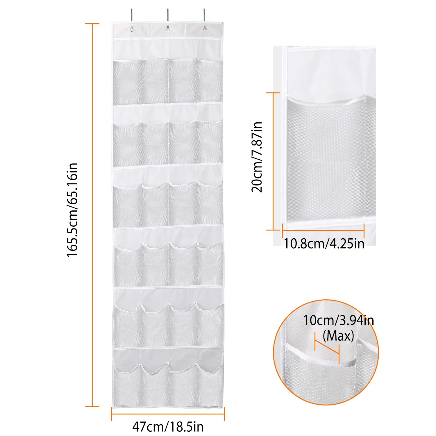 *24 Pockets & Space Saving*:Owning 24 mesh pockets,our shoe rack can organize at least 12 pairs of shoes for children or high-heeled shoes for women. Adopting over-the-door design,it can be placed behind doors,creating space in seconds and ridding your closet floor of those piles of shoes and making your room tidy.