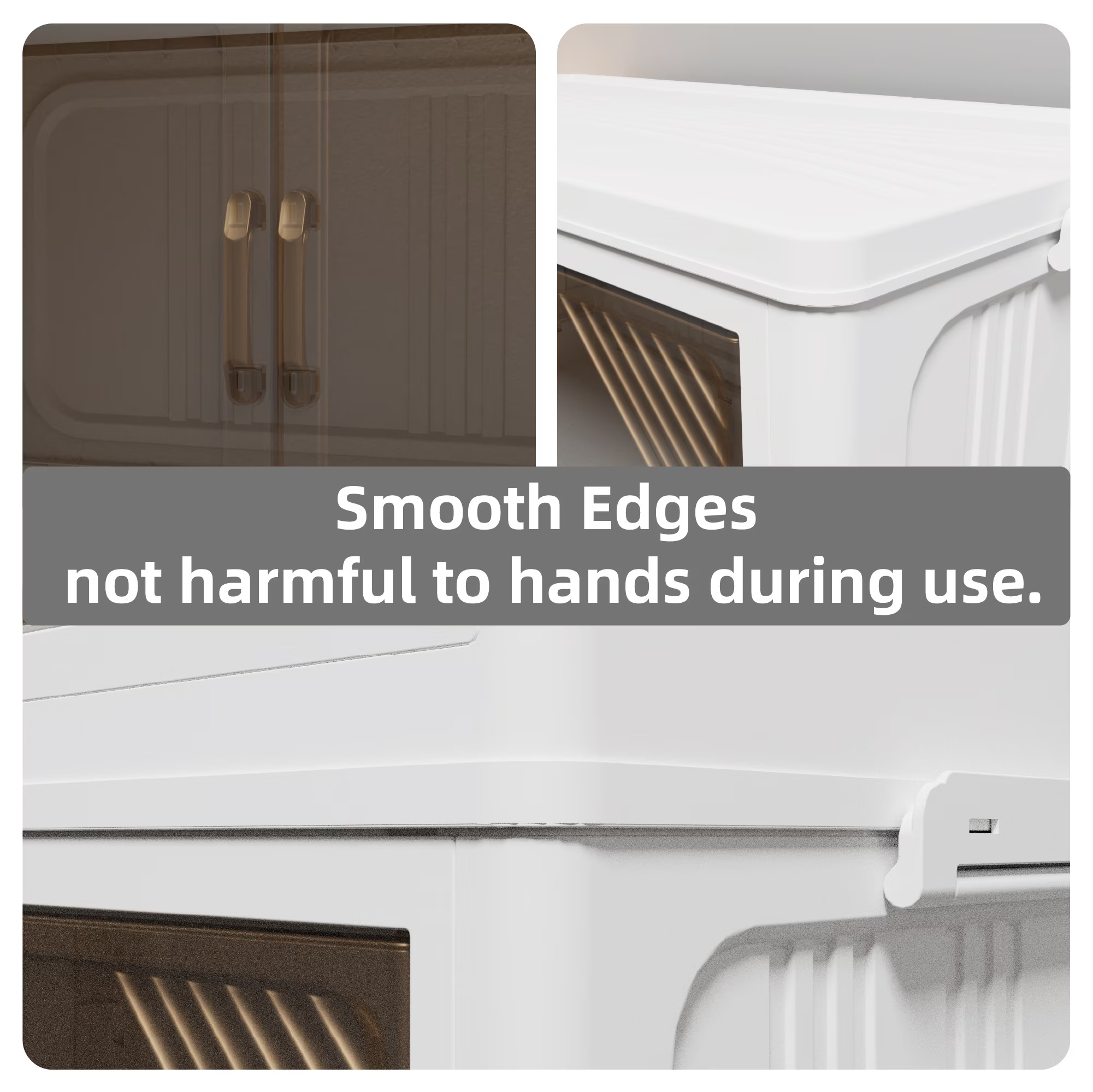【Easy-Access Doors】 : Our innovative design includes dual front doors, providing two convenient ways to access your belongings. Additionally, the top cover can be easily removed for quick access to larger items like clothing and blankets.