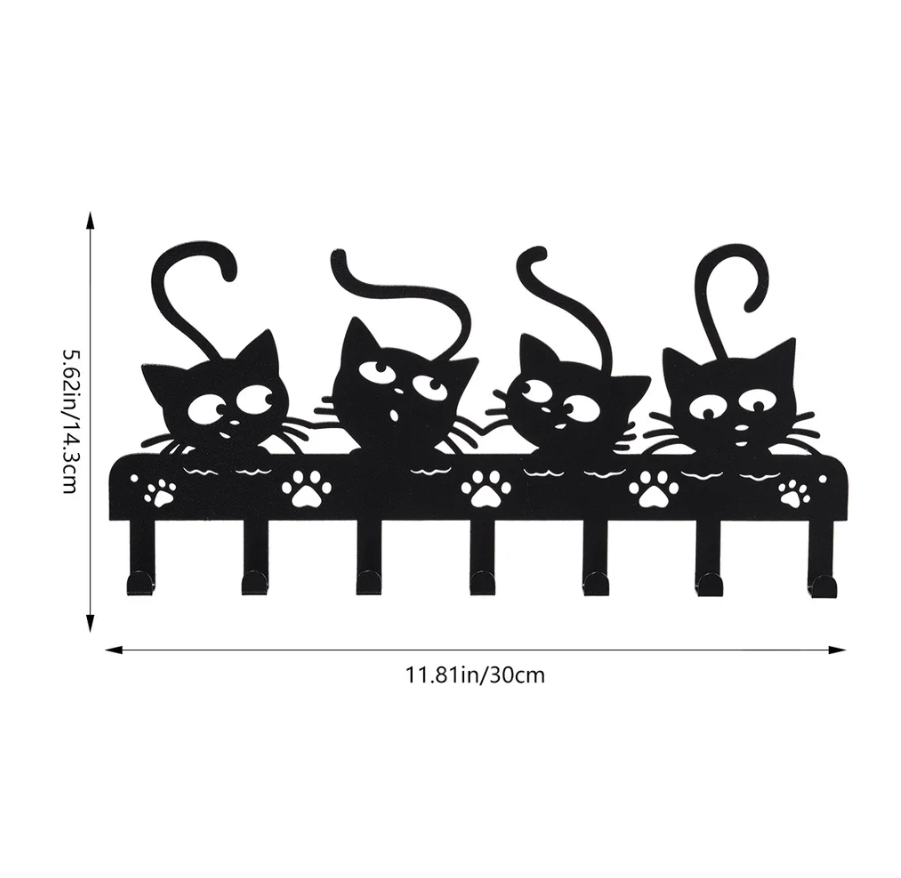 1pc Black Cats Wall Hooks Key Holder W 7 Hooks – Black Iron Wall-Mounted Rack