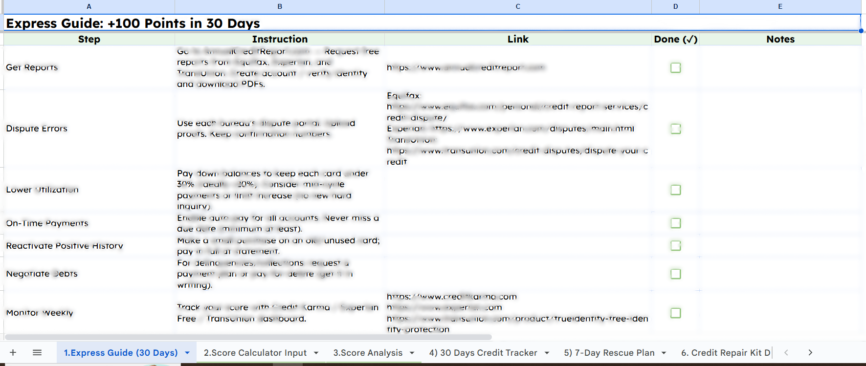Express Guide +100 Credit Points in 30 Days PDF, Excel and Docs Kit