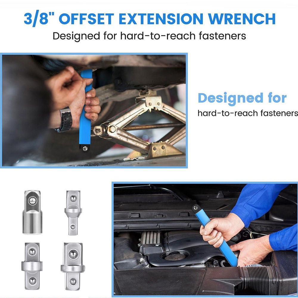 - APPLICATION: This set of offset extension wrenches is specifically designed for tackling hard-to-reach fasteners. Whether you’re working on water pumps, power steering pumps, generators, air conditioning compressors, transmissions, or starters, this low-profile tool set will provide the necessary assistance in reaching the fasteners you require.