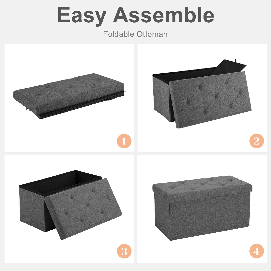 • 【Easy Set Up】Unfold, insert the bottom panel, connect the feet, and your folding storage bench is set for use.
